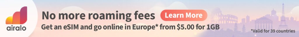 A Airalo é a primeira e maior empresa de dados móveis do mundo! Viaja para qualquer parte do mundo e mantém-te ligado à Internet! É bastante fácil, clica no link, pesquisa o país para onde vais viajar e compra o pacote de dados que necessitas. Depois é só ativar o cartão e-sim no teu smartphone. Se precisares de ajuda, estamos cá para te ajudar 🙂